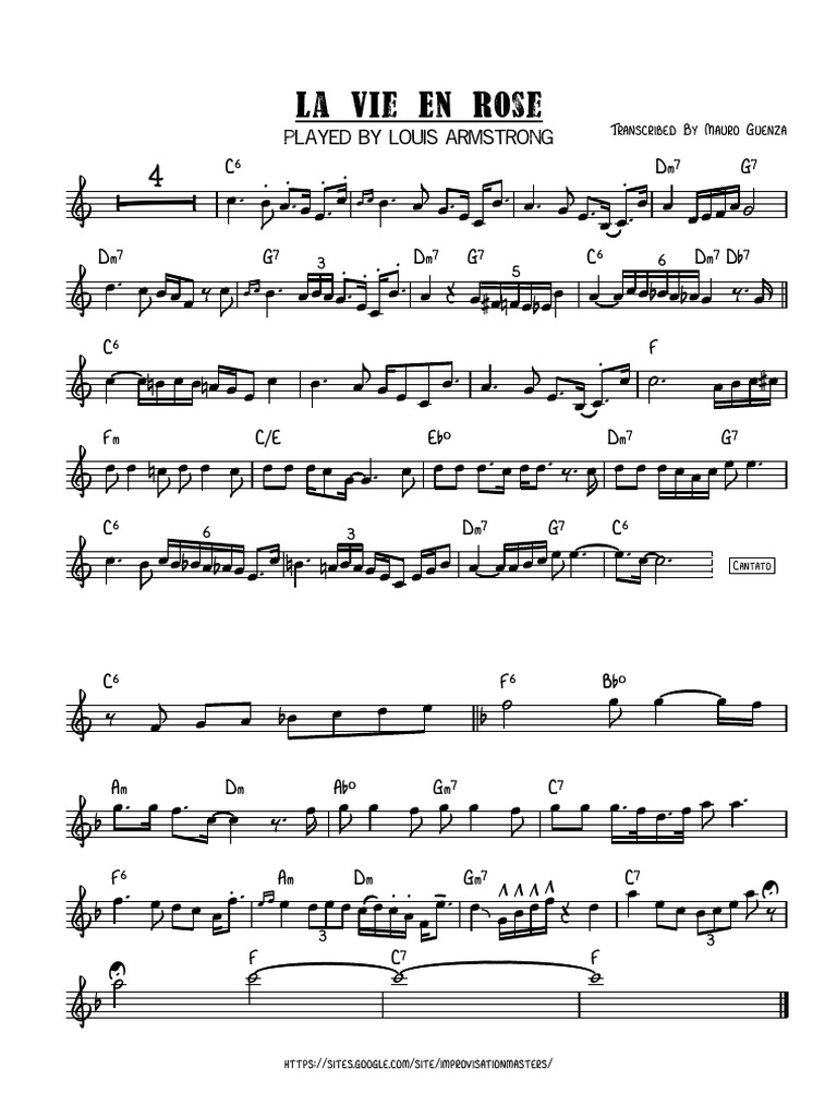 Trumpet Transcription For La Vie En Rose Louis Armstrong