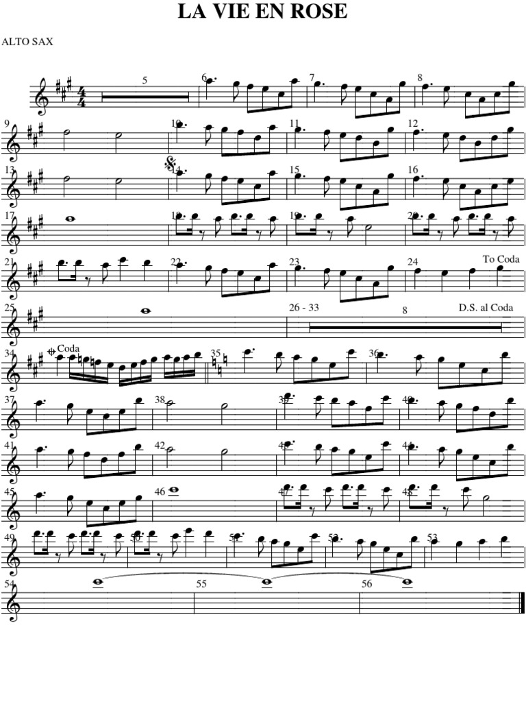 Tubescore La Vie En Rose Sheet Music For Alto Saxophone By