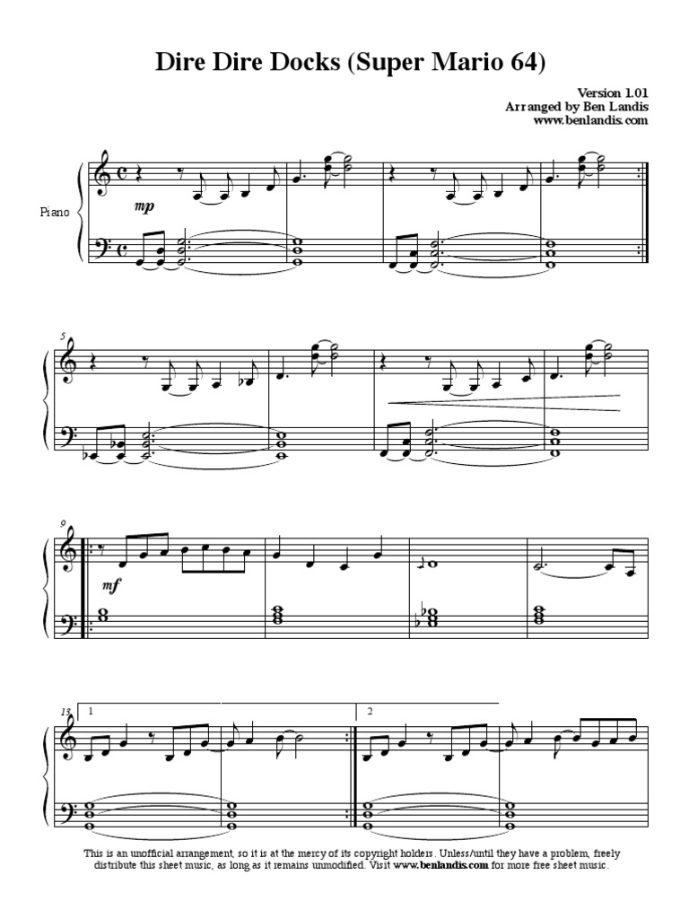 Super Mario 64 Dire Dire Docks Sheet Music For Piano