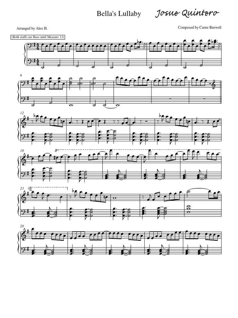 Bella S Lullaby Carter Burwell Sheet Music Pdf