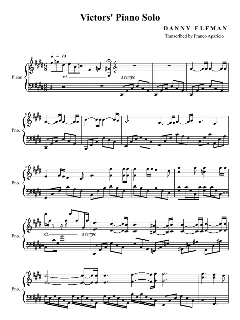 Victors Piano Solo By Danny Elfman J W Pepper Sheet Music