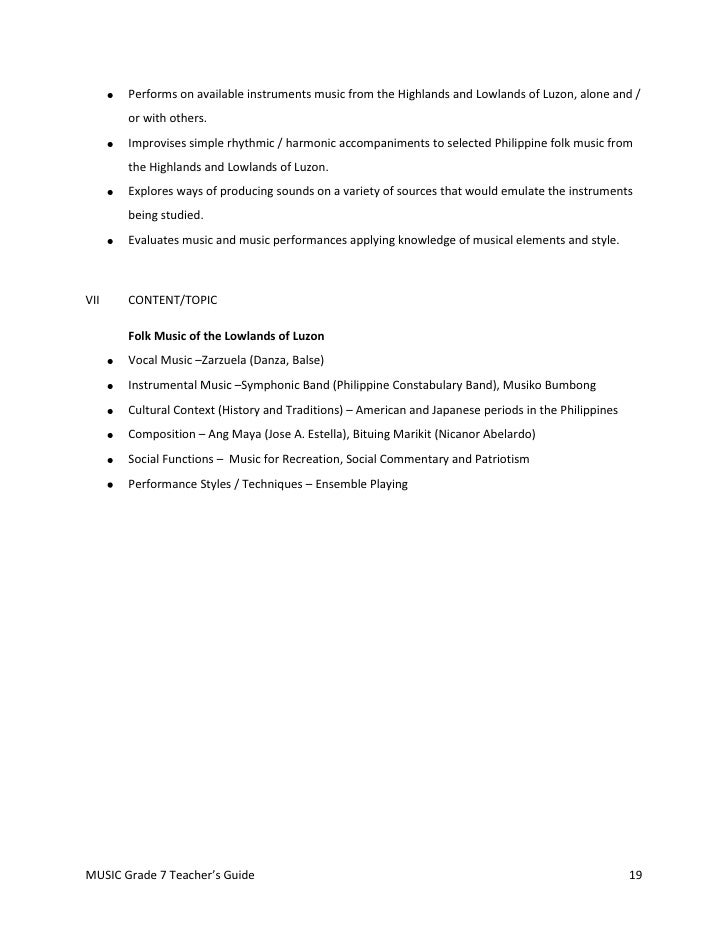 Grade 7 Music Music Of The Lowlands Of Luzon 1 Music For